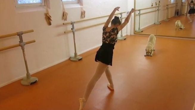 In diesem süddeutschen Ballettstudio geht es ordentlich zur Sache. Die erste Tänzerin: eine hart trainierende Ballerina. Die Herausforderin: Familienhündin Nele. Der Kampf ist eröffnet.