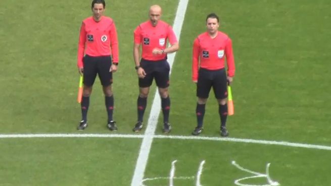 Der Unparteiische Joao Capela hat sich eine ganz besondere Geste überlegt, um an seinen kürzlich verstorbenen Kollege Paulo Paraty zu erinnern. Während der Schweigeminute vor einem Spiel sprüht der Portugiese mit dem umstrittenen Freistoßspray die Abkürzung 'RIP', also 'Ruhe in Frieden' in den Mittelkreis.